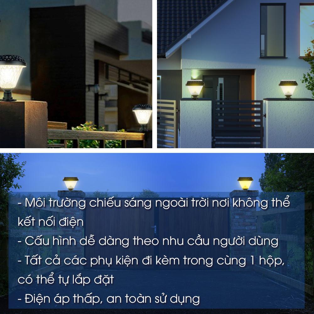 Đèn cổng Philips Deco solar gate top BGC050 LED3/730 Gate Top có hai thiết kế vuông (S) và tròn (R). Đèn chạy bằng năng lượng mặt trời rất lý tưởng để thắp sáng ngôi nhà và khu vườn của bạn. Thông minh và phong cách, đèn cổng Philips Deco dễ dàng lắp đặt để tiếp cận với nguồn ánh sáng mặt trời, tiêu thụ ít điện năng và bền bỉ. Điểm đặc biệt • Môi trường chiếu sáng ngoài trời nơi không thể kết nối điện • Cấu hình dễ dàng theo nhu cầu người dùng • Tất cả các phụ kiện đi kèm trong cùng 1 hộp, có thể tự lắp đặt • Điện áp thấp, an toàn sử dụng Lý do chọn sản phẩm • Hệ thống điện mặt trời độc lập • Bao gồm điều khiển từ xa cho một số chế độ • Bảng PV và pin Li tích hợp trong đèn. Thông số kỹ thuật • Quang hiệu: 140 Lm/W • Quang thông: 300 lumens • Công suất: 1.4 • Điện áp: 5.5 V • Tuổi thọ: LED > 25k Hrs • Li-battery 3.7V/2000mAh • Bảng điều khiển năng lượng mặt trời: vuông: 1.8W; tròn: 1.1W • Vỏ: ABS • IP65 • CRI >70 • CCT 3000K • Cấu hình với điều khiển từ xa: Bật, Tắt, 12H, 6H, 3H hoạt động #Philips #PhilipslightingVietNam #Nangluongmattroi #Dencong