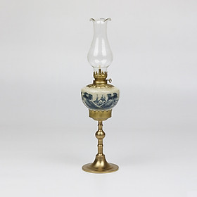 Đèn dầu Bát Tràng - Sản phẩm bao gồm: đèn + bóng đèn - Kích thước: cao 30cm tính cả bóng đèn - Đèn dầu Bát Tràng men lam bọc đồng được nung ở nhiệt