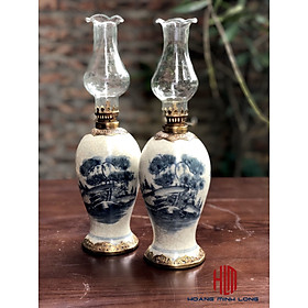 Đèn dầu Bát Tràng - Sản phẩm bao gồm: đèn + bóng đèn - Kích thước: cao 30cm tính cả bóng đèn - Đèn dầu Bát Tràng men lam bọc đồng được nung ở nhiệt