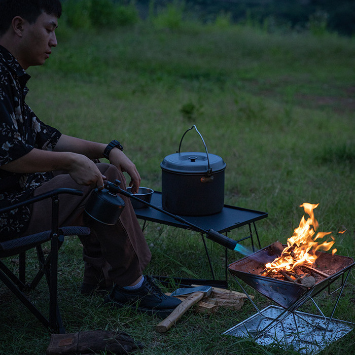 là phụ kiện không thể thiếu để nhóm than, đốt củi khi nhất là mùa mưa gió, nơi có sương mù, độ ẩm cao hoặc cho người chưa có nhiều kinh nghiệm outdoor. Đèn khò cán dẫn khí dài mạ Titanium đen Campingmoon BKMT-3955 công suất cao 12000 kcal/h với thiết kế cán dẫn khí dài giữ khoảng cách an toàn với ngọn lửa. Chất liệu hợp kim nhôm được mạ titanium đen kết hợp tay cầm gỗ màu óc chó đen vô cùng đẹp và tinh tế.