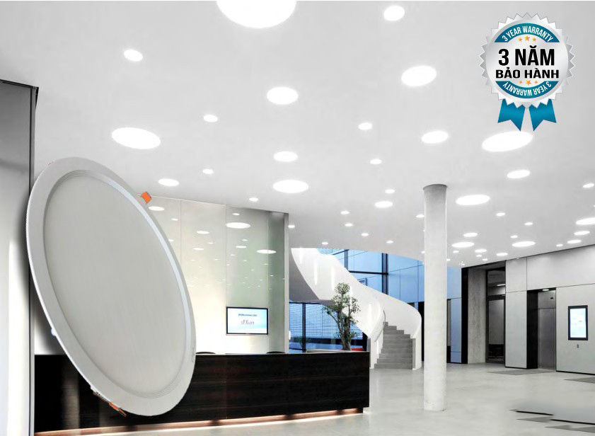 Đèn LED âm trần downlight sử dụng chip led samsung có hiệu suất chiếu sáng 150lm/W, tiết kiệm 75% điện năng thay thế đèn downlight halogen 35w, Ánh sáng đồng đều, không gây chói mắt,