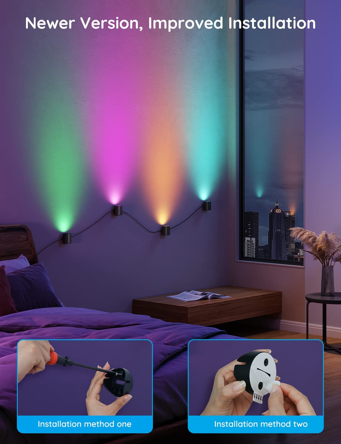 Tô điểm cho hành lang, phòng khách và các không gian khác xung quanh nhà bằng những chiếc đèn đa năng. Mỗi bộ bao gồm 4 đèn để có thể dễ dàng điều chỉnh màu sắc, độ sáng và hiệu ứng.