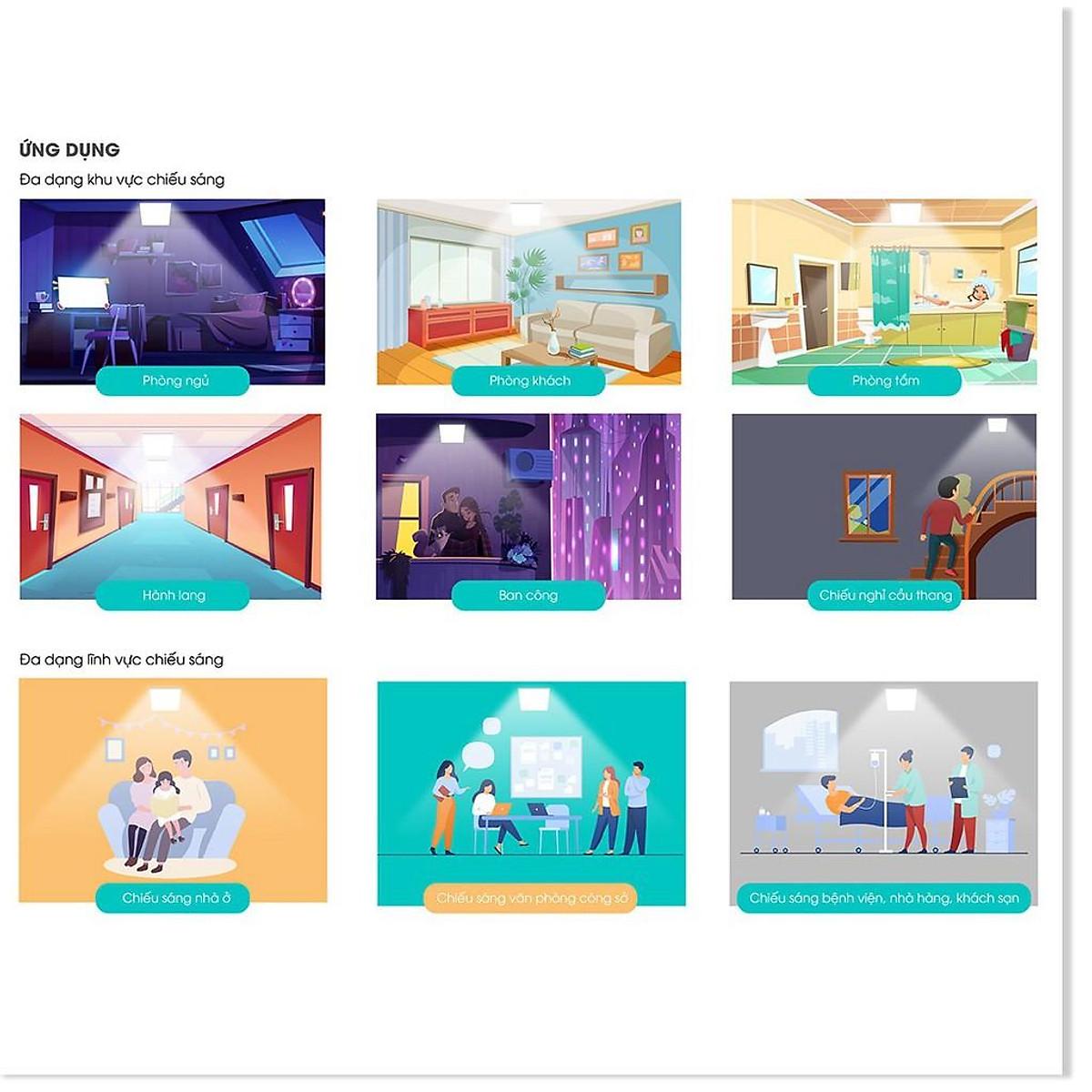 Đèn Led ốp trần thiết kế nhằm thay thế đèn ốp trần huỳnh quang với khả năng tiết kiệm điện, độ tạo màu và độ bền cao, không phát ra các tia tử ngoại hay