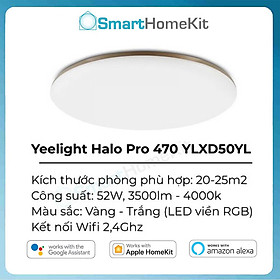 Đèn LED ốp trần thông minh Yeelight Halo Pro YLXD49YL 100W - Khung Kim Loại Vàng, Đèn Hắt 65k Màu
