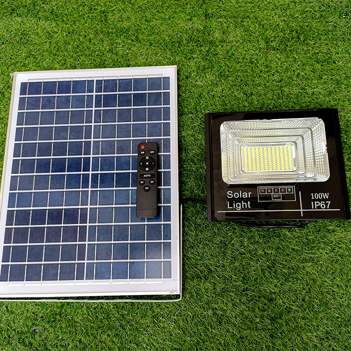 Đèn năng lượng mặt trời pha báo pin 100w