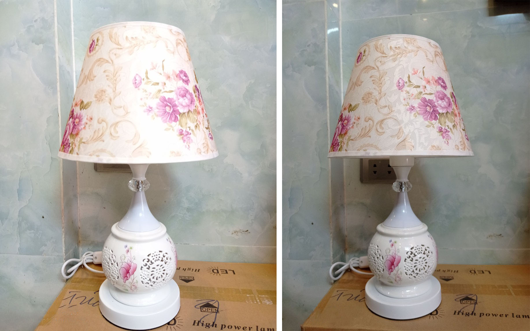 - Thân đèn là bình gốm sứ cao cấp đã trải qua quá trình nung ở nhiệt độ cao đem đến chất lượng tuyệt hảo, trên đó được tô vẽ bằng những hoa văn, đường nét thật nhẹ nhàng nhưng cũng thật quyến rũ lòng người.