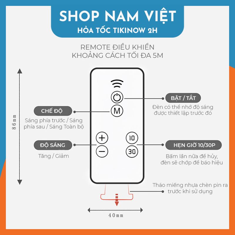 Mua tại TiktokĐóng gói: 1 đèn ngủ ️ Tính năng Đèn ngủ thông minh với 10 mức độ sáng khác nhau phù hợp nhiều môi trường và cài đặt của bạn. Có tính năng hẹn giờ tự tắt Có 3 chế độ sáng khác nhau: đèn trước, đèn sau và cả 2 đèn. Điều khiển từ xa bằng remote. Có mẫu đèn: có cổng sạc USB hoặc không có. ️ Thông số Kích thước: 5061104mm Nguồn vào: 220V~50Hz Công suất: 1W Chất liệu: nhựa ABS ️ Cách sử dụng: Cắm đèn ngủ vào nơi bạn muốn sử dụng Kéo miếng nhựa chặn khe pin để sử dụng remote