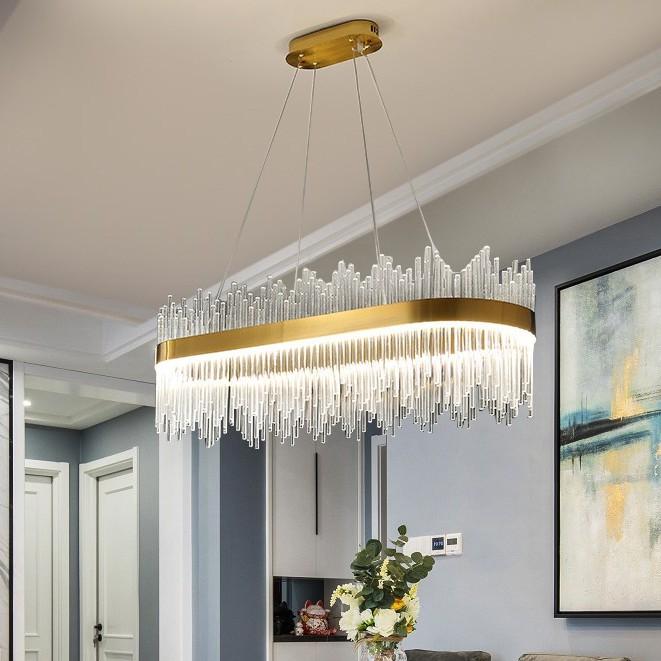 Sự kết hợp với pha lê làm cho đèn thả càng trở lên đắt giá hơn. Ngay cả khi không thắp đèn thì ánh sáng của thiên nhiên cũng làm toát lên được vẻ sang trọng và cuốn hút. Chiếc đèn hiện lên lung linh màu sắc của sự giàu sang quyền quý. Đây chắc chắn sẽ là sự lựa chọn tốt nhất cho căn phòng hiện đại đẳng cấp của bạn.