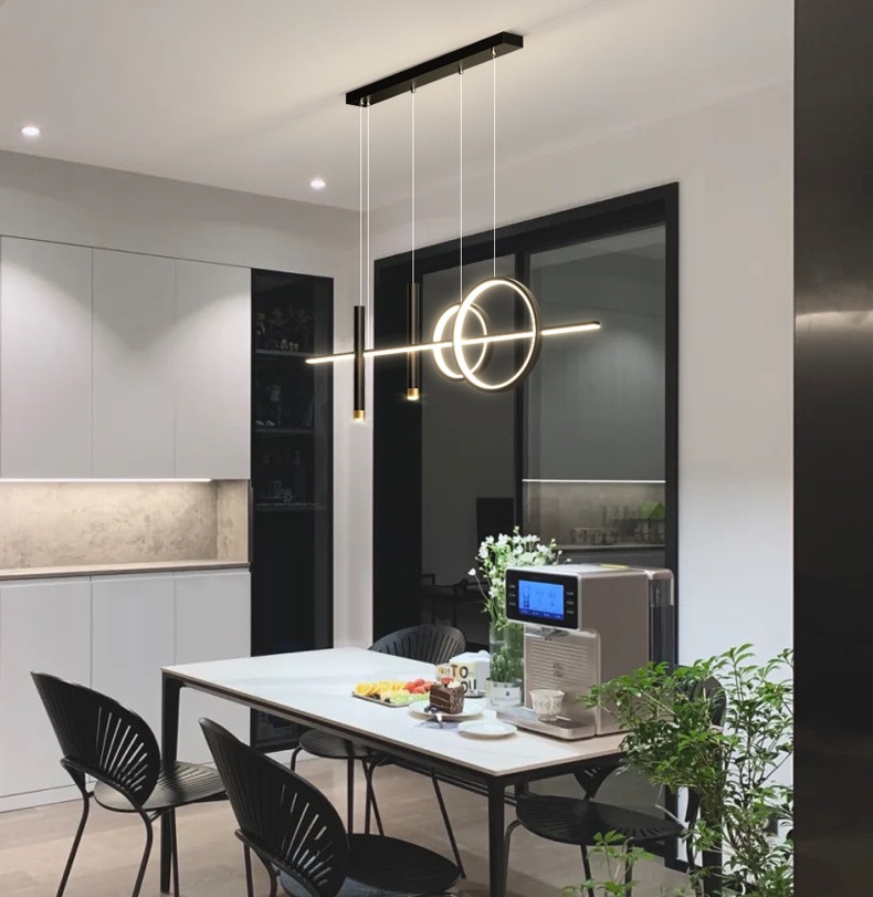 Thông qua việc trang trí nội thất của không gian có thể biết phần nào tính cách và con mắt nghệ thuật của chủ nhà. Bởi vậy những vật dụng trang trí nội thất luôn được người dùng lựa chọn cực kỳ cẩn thận. Đặc biệt là thiết bị chiếu sáng lại càng được chú trọng vì đây chính là sản phẩm cần thiết trong mọi không gian. Mỗi loại đèn lại có những ưu điểm và thiết kế khác nhau đem đến cho người dùng những cảm nhận khác biệt. Đèn thả hiện đại là một trong số các loại đèn độc đáo và mới lạ giúp không gian ngôi nhà bạn trở nên tươi mới hơn. THÔNG TIN SẢN PHẨM: Màu sắc: Đen Thân đèn làm bằng sắt cứng và quy trình sơn tinh tế, bền và sáng màu, chống ăn mòn, chống gỉ và chống trầy xước. Đế bắt trần chịu lực bền và chắc chắn, chống gió và chống rỉ sắt, khả năng chịu lực mạnh. Vòng kim loại dày làm bằng phần cứng chất lượng cao được sơn ở nhiệt độ cao màu sắc tươi sáng. Chụp đèn silicon có độ truyền ánh sáng cao, truyền ánh sáng đồng đều, ánh sáng dịu, dễ lau chùi. Chíp led tích hợp không nhấp nháy, tuổi thọ cao bảo vệ sức khẻo và đôi mắt của gia đình bạn. Kích thước sản phẩm: 100x58(cm) Ứng dụng: phòng ăn, phòng khách, khách sạn, Công nghệ chiếu sáng hiện đại của bóng đèn led giúp cho đèn bàn ăn đẹp cung cấp ánh sáng đều màu, ổn định trong khoảng diện tích từ 10-35 m2 mà không bị chập chờn, chớp nháy gây ảnh hưởng đến thị giác người nhìn. Hơn nữa, chúng còn làm nổi bật lên vẻ đẹp của các món ăn từ đó thu hút các thành viên trong gia đình quây quần lại thưởng thức. Không chỉ đóng vai trò cung cấp ánh sáng, Đèn thả trang trí còn là vật dụng làm nổi bật lên phong cách nội thất của không gian. Tại mỗi không gian, các bạn cũng nên biết cách bày trí sao cho đạt hiệu quả thẩm mỹ cao nhất. Đèn thả giúp mang lại những điều vui vẻ, hạnh phúc trong căn hộ của bạn. Chính vì thế nhiều gia đình lựa chọn lắp đèn thả trong phòng ngủ vừa tạo không gian ấm áp, lãng mạn. Vừa giúp tăng sự gắn kết trong hạnh phúc gia đình.