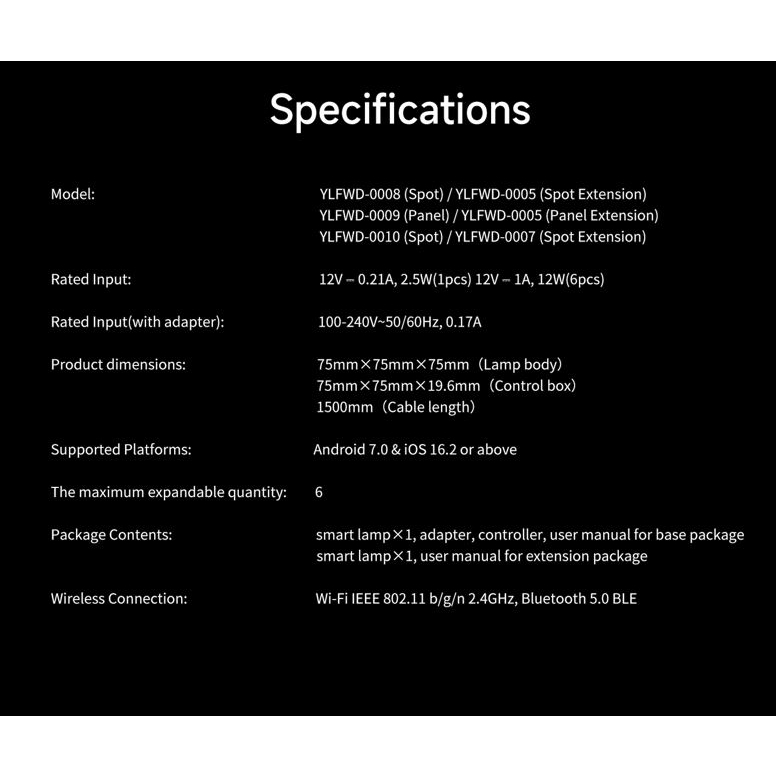  THÔNG SỐ KỸ THUẬT: • Số hiệu: YLCT03YL (Phiên bản Pro) • Điện áp đầu vào: AC100-240V 50-60Hz 0.35A • Điện áp đầu ra: 14W Max • Công suất: 18W • Chỉ số hoàn