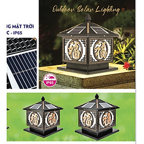 Đèn năng lượng mặt trời - Đèn trụ cổng trang trí sân vườn với họa tiết chữ Phúc siêu đẹp, siêu bền