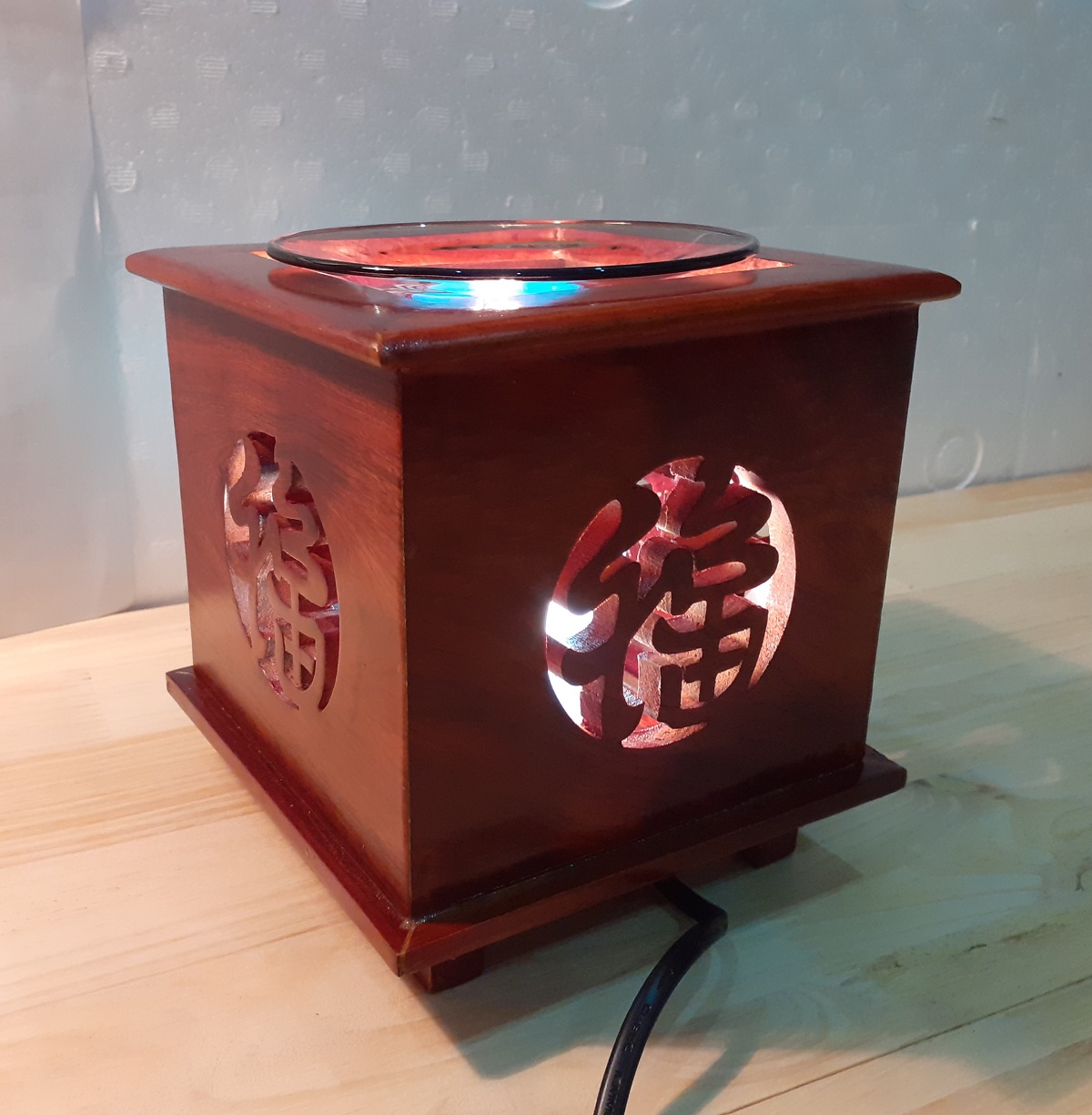 Mua tại TiktokĐèn xông tinh dầu gỗ Hình vuông Chữ Phúc -gỗ hương- Tặng kèm 1 bóng đèn