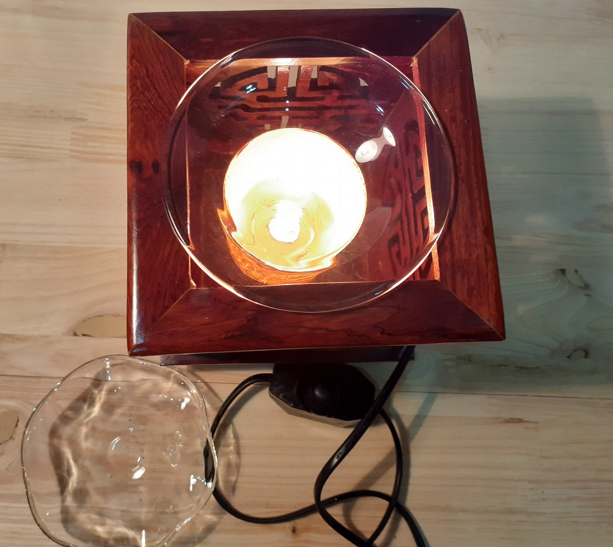 ✨Đèn xông tinh dầu gỗ Hình vuông Chữ Phúc -gỗ hương- Tặng kèm 1 bóng đèn
