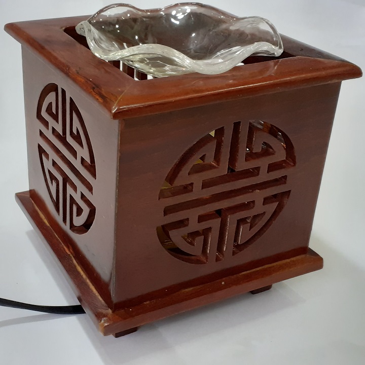 Đèn xông tinh dầu gỗ Hình vuông Chữ Thọ -gỗ hương- Tặng kèm 1 bóng đèn