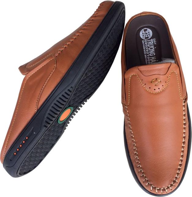 Tên sản phẩm: Giày Lười Nam Trường Hải Đế Âm da bò nguyên tấm 2 màu đen, vàng GL330 Quai giày :được gia công tại nhà nên được làm bằng da bò cao cấp càng