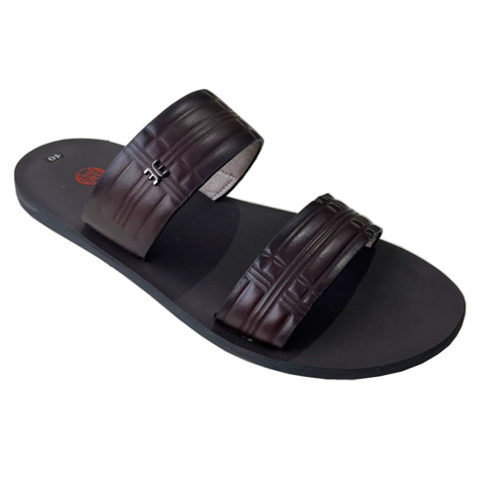 Dép quai ngang nam TRường Hải hai dây da bò màu nâu