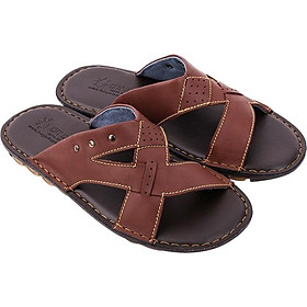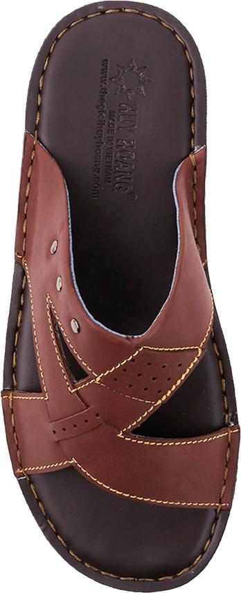 Dép nam Huy hoàng da bò quai ngang màu nâu 7136