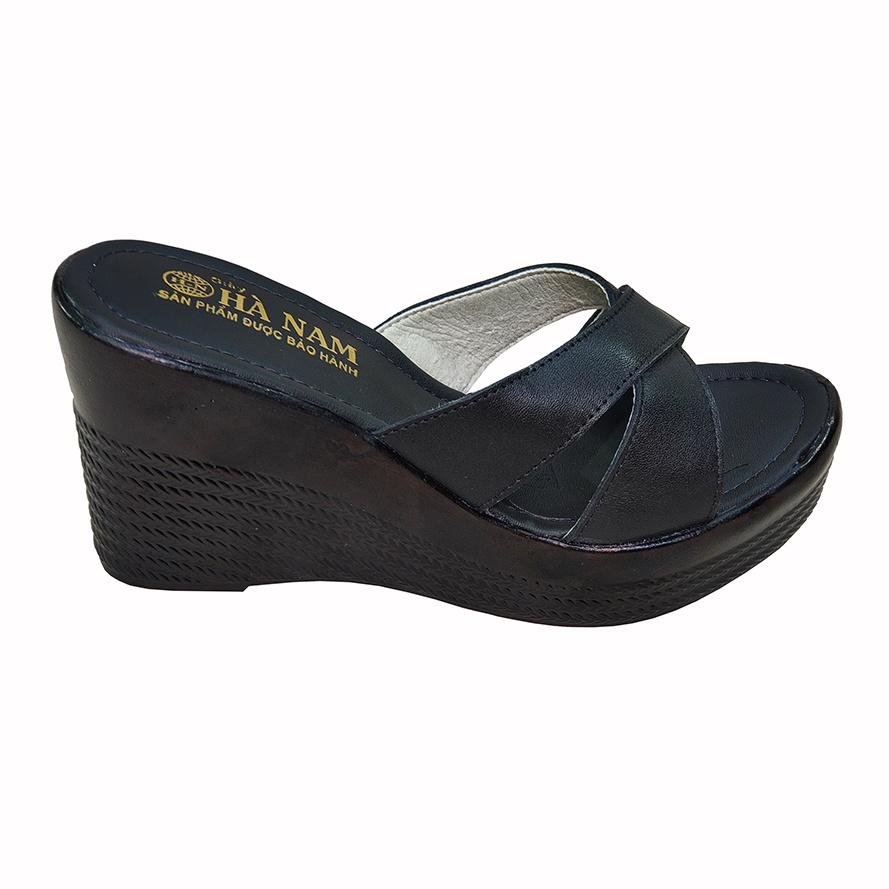 Mua tại TiktokDép Nữ Quai Chéo Đế Xuồng HÀ NAM Da Bò Thật Cao Cấp 9cm DNU2159