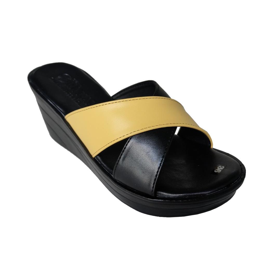 Dép nữ đế xuồng 5cm da bò thật