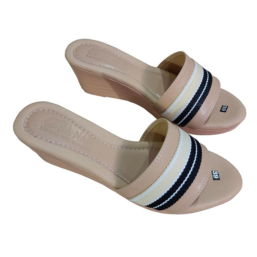 Dép Nữ Quai Ngang Đế Xuồng TiTi ĐÔ Da Bò Thật Cao Cấp 7cm DNU2165d