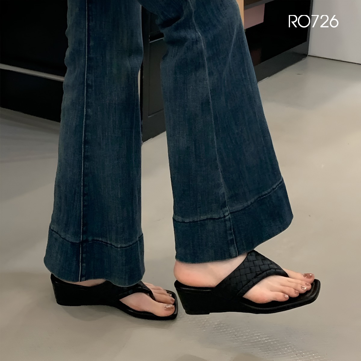 RO725 – Dép guốc nữ kẹp ngón bản lớn, thiết kế nổi bật nâng tầm phong cách Gây ấn tượng từ cái nhìn đầu tiên với phần bản kim loại sáng bóng phối hình oval