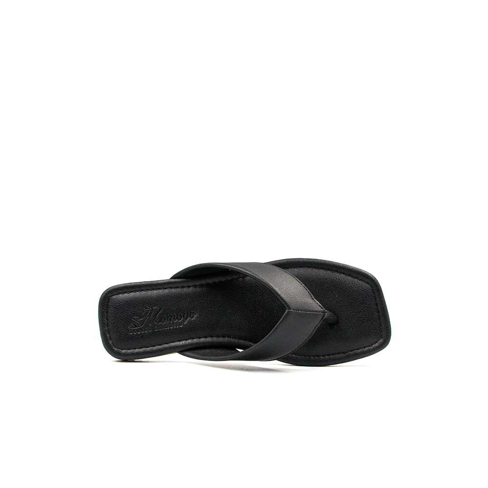 - Kiểu dáng xỏ ngón, đế cao 5cm, thiết kế đế bằng đi chắc chắn..  - Mặt vải được làm bằng da nhân tạo.  - Thoải mái khi mang, bền bỉ, chống va đập.  - Là một đôi dép được thiết kế theo lòng của bàn chân, tạo cảm giác ôm khít chân, vô cùng êm ái.  - Đế EVA  - Tính độc đáo của dép  nổi bật ở "độ bền và sự mềm mại khi đi". -