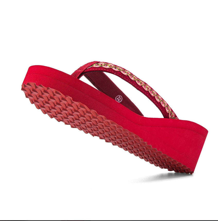 Thiết kế sang trọng: Quai dép được nhấn nhá bằng đường họa tiết ánh kim nổi bật, tôn lên vẻ đẹp nữ tính và tinh tế.
