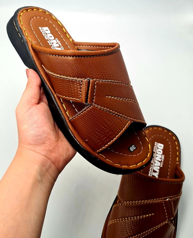 Dép Da Nam  - Lịch Lãm & Thoải Mái Mỗi Ngày - Chất liệu cao cấp: Sử dụng da tổng hợp chất lượng, mềm mại, bền bỉ theo thời gian, mang lại cảm giác êm ái và thoáng khí cho bàn chân. - Thiết kế sang trọng: Tông màu đen lịch lãm, kết hợp với đường chỉ may tinh tế và logo kim loại nổi bật – tôn lên vẻ nam tính, trưởng thành. - Đế chống trượt: Đế EVA siêu nhẹ, độ đàn hồi tốt, kết hợp vân đế tăng độ ma sát – an toàn khi di chuyển trên nhiều bề mặt. - Form ôm chân: Thiết kế bản quai ngang rộng, ôm gọn bàn chân nhưng không gây bí bách, dễ xỏ vào – thích hợp cho người trung niên và người lớn tuổi. - Ứng dụng đa năng: Phù hợp sử dụng trong nhà, đi dạo phố, đến văn phòng hoặc các dịp gặp gỡ thân mật. Lựa chọn tuyệt vời cho quý ông yêu thích sự thoải mái, đơn giản nhưng vẫn giữ được nét tinh tế trong từng bước chân.