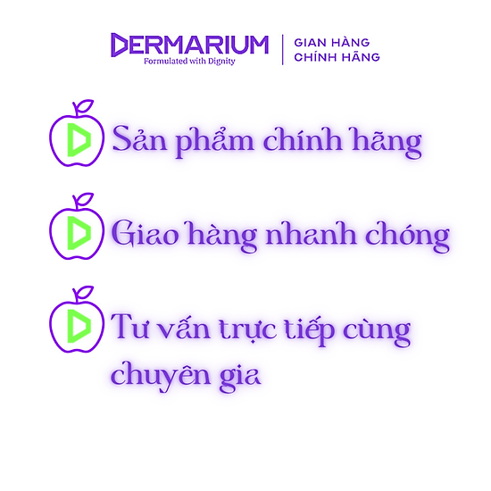 *Công thức sản phẩm được nâng cấp liên tục theo phương châm sáng tạo của Dermarium, do đó thành phần hiển thị tại đây có thể chưa được cập nhật kịp thời như thông tin trên bao bì, tùy theo thời điểm mua hàng.
