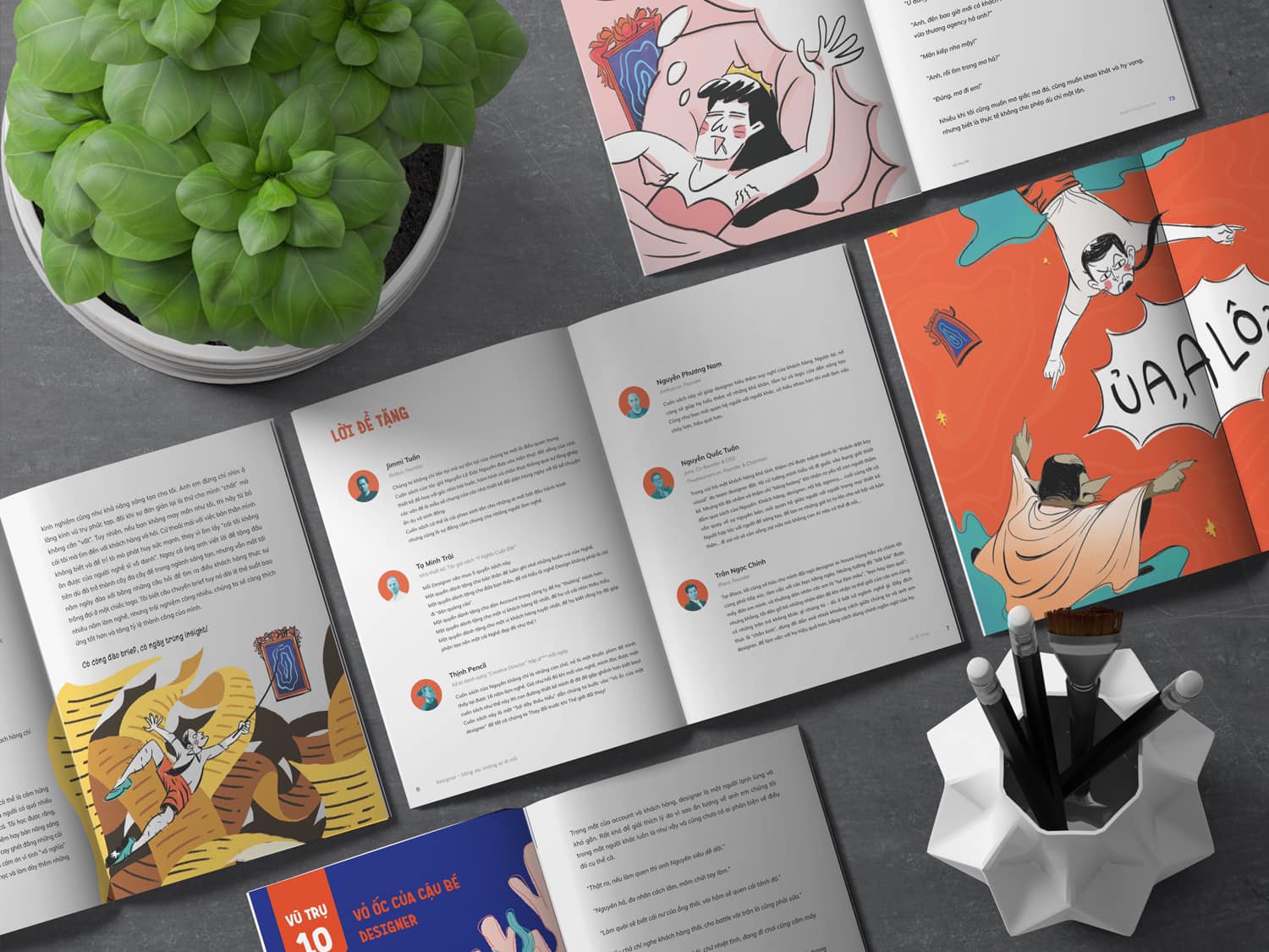 “Dù là quá khứ hay hiện tại, ở bất kì vũ trụ nào, tôi vẫn là Nguyên không hoài nghi niềm đam mê của mình, chỉ là hôm nay tôi muốn đi cùng bạn ở những bước đi đầu tiên khi dấn thân vào con đường này. Ước mơ của tôi là trở thành designer sống dai không ai đì nổi, là kẻ dù bỏ cuộc cũng phải là hành khách cuối cùng trong chuyến tàu ước mơ.” Đằng sau những câu chuyện hóm hỉnh hay châm biếm còn là sự cổ vũ hết mình của một “đì-dai-nơ trung niên quá lứa” cho những người bạn, người anh em trong nghề sáng tạo. Đừng bỏ lỡ cuốn bí kíp “sống dai” thú vị này nếu bạn đang hoạt động trong lĩnh vực thiết kế nhé!