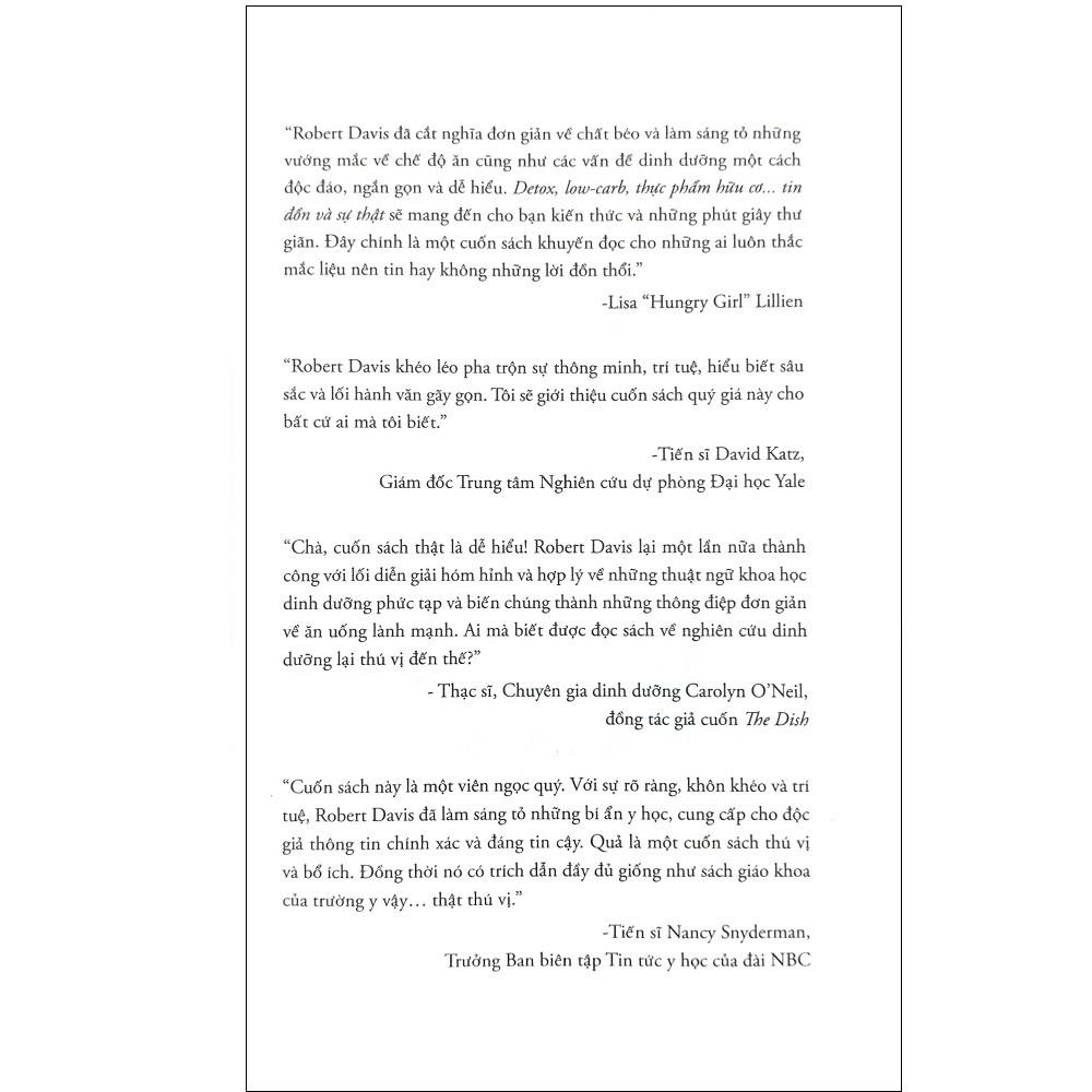 Với nền tảng ấy, bạn có quyền đòi hỏi sự khác biệt. Không còn mớ giấy tờ khô khan toàn số và chữ. Không còn những khuyến cáo và bảng giá trị dinh dưỡng, được vẽ ra để người đọc tuân theo một cách mù quáng, máy móc, thụ động. Cuốn sách này chính là giải pháp bạn cần và xứng đáng nhận được.