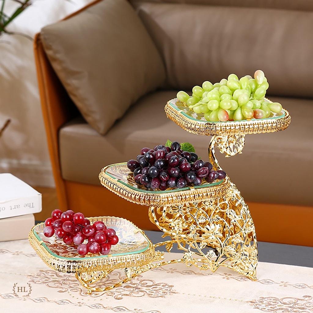 ✨Đĩa 3 tầng khảm đá Hoàng Gia hình Thuyền | KỆ ĐỂ BÁNH HOA QUẢ 3 TẦNG HÌNH THUYỀN VUÔNG CHẤT LIỆU HỢP KIM ĐĨA KÍNH
