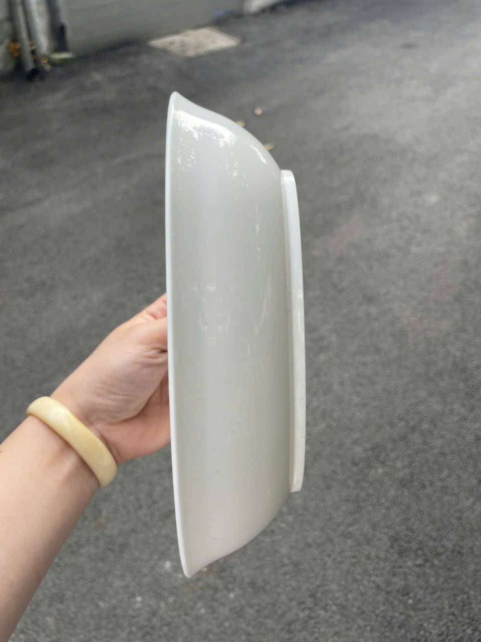 Thiết kế đẹp mắt hình eo. Có thể thả hoa, bày trái cây, bày món tráng miệng như chè, hoa quả thái miếng hoặc bày đồ ăn (salad, súp, hoặc nguyên cả con cá dài).