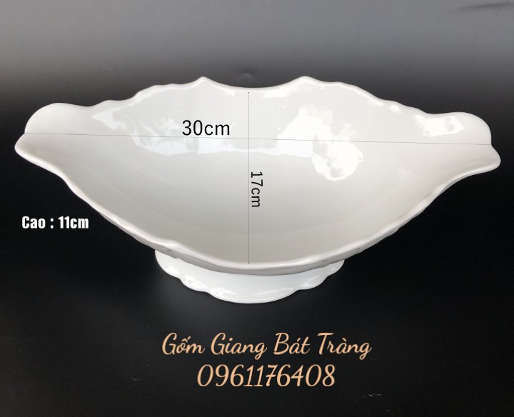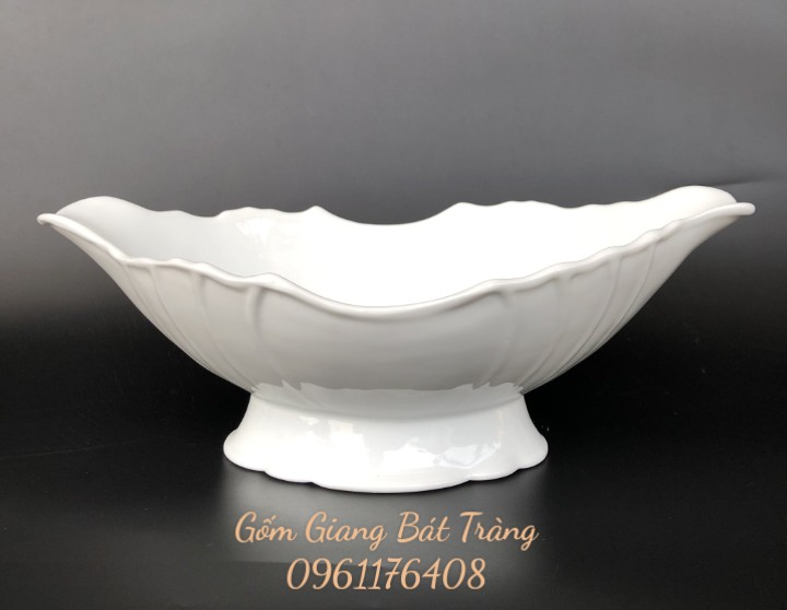 Thiết kế đẹp mắt hình eo. Có thể thả hoa, bày trái cây, bày món tráng miệng như chè, hoa quả thái miếng hoặc bày đồ ăn (salad, súp, hoặc nguyên cả con cá dài).