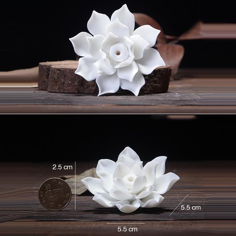 ✨Đĩa cắm nhang hoa sen gốm trắng tiểu bạch