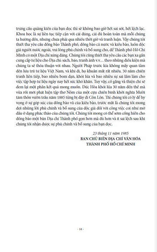 Để đáp ứng nhu cầu của bạn đọc, nhân kỷ niệm 320 năm Sài Gòn - Thành phố Hồ Chí Minh (1698 - 2018), NXB Tổng hợp TPHCM tái bản trọn bộ "Địa chí Văn hóa Thành phố Hồ Chí Minh".