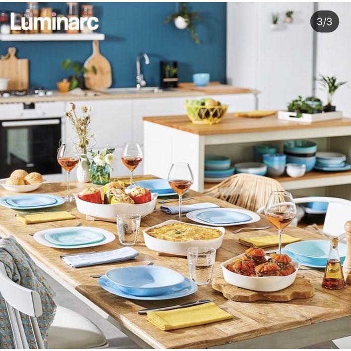 Bộ 6 chén bát đĩa thủy tinh Luminarc P9203 – Xanh dương (Light Blue) Mô tả sản phẩm: Bộ chén bát đĩa thủy tinh trắng Luminarc mang kiểu dáng sang trọng, tinh tế, góp phần