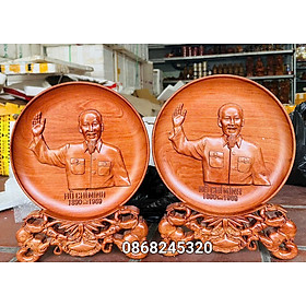 ✨Đĩa điêu khắc chân dung bác hồ bằng gỗ hương đá kt mặt tròn 30×3cm