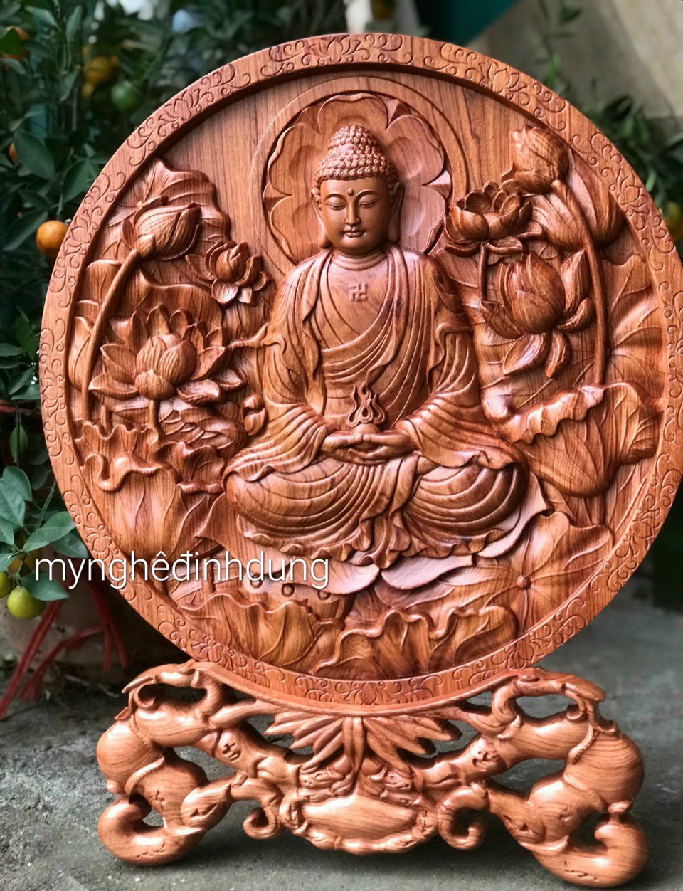 ✨Đĩa khắc phật adi đà bằng gỗ hương đá kt 30cm