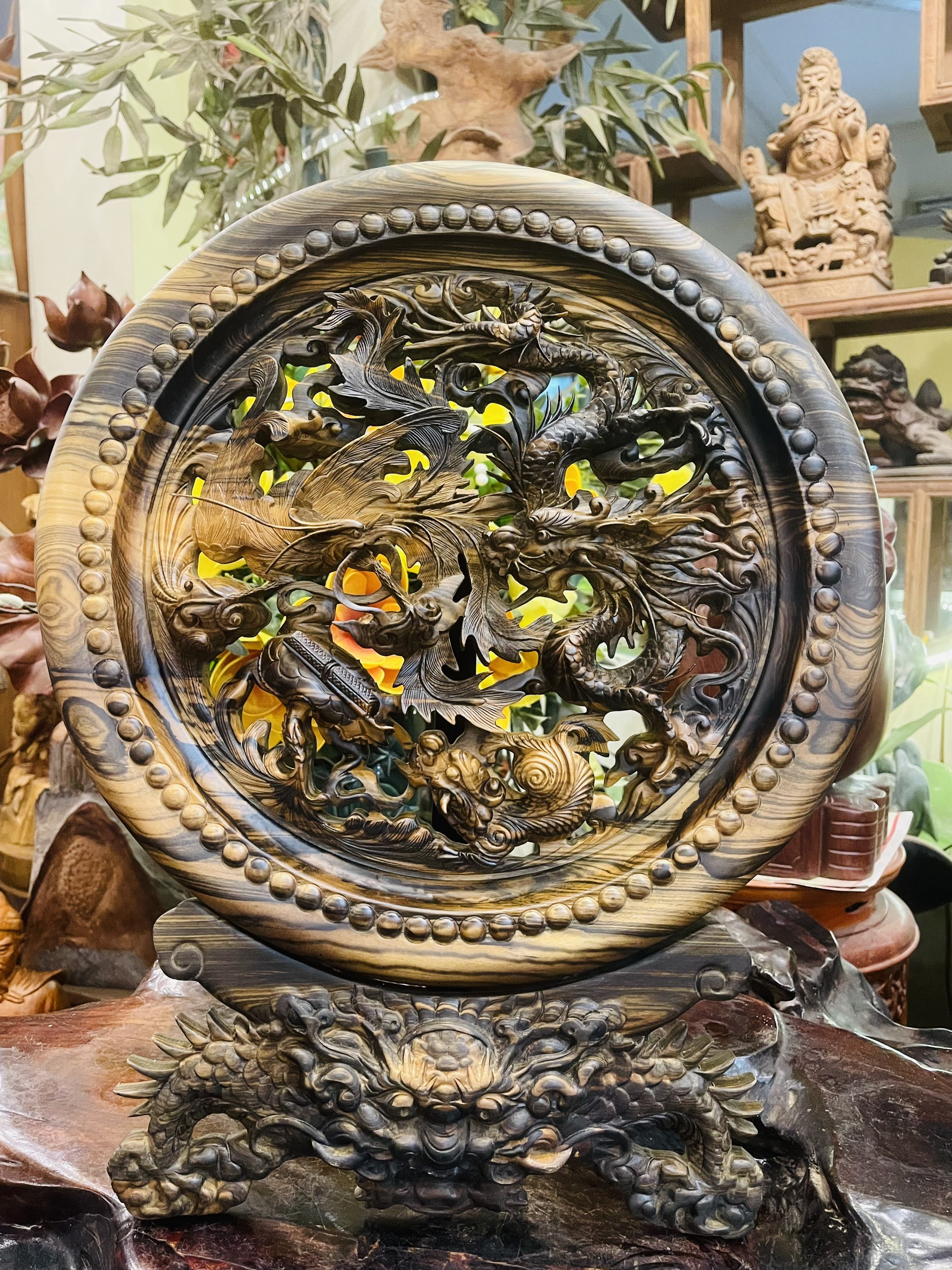 _ Bình hoa sen trang trí phòng thờ phòng khách ,phòng khách được làm bằng chất liệu gỗ mun đuôi công tự nhiên 100% _ kt bình cắm hoa 23×37cm + kt 25 hoa lá