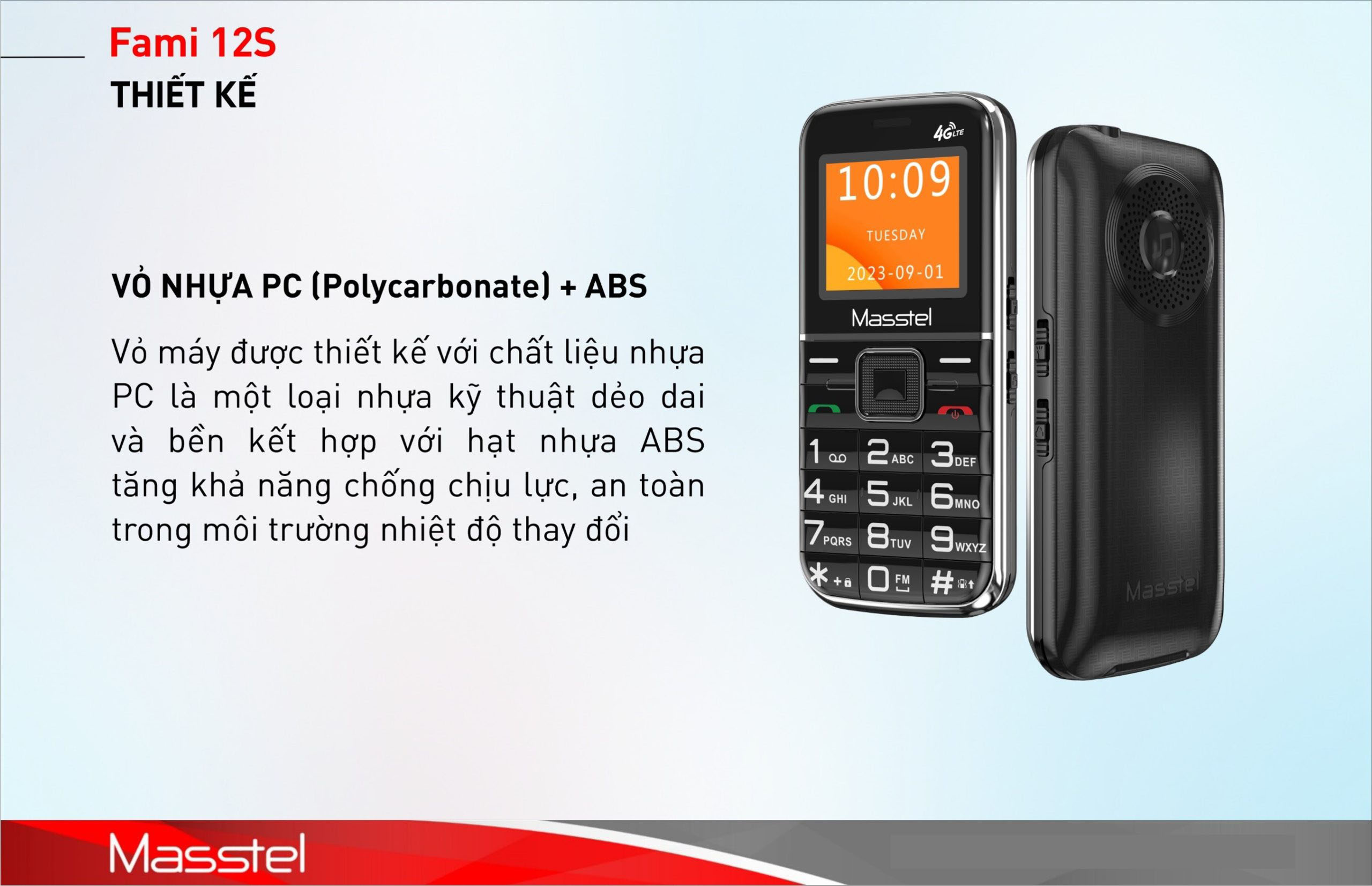 ✨Điện thoại người già Masstel Fami 12S 4G(LTE) , Bàn phím chữ số to, Loa lớn , Máy viền thép chắc chắn - Hàng chính hãng