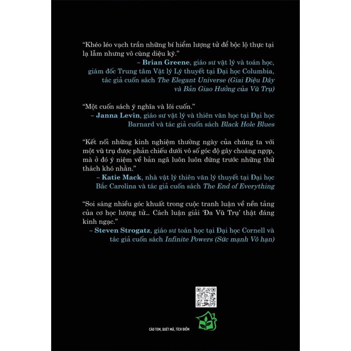 “Soi sáng nhiều góc khuất trong cuộc tranh luận về nền tảng của cơ học lượng tử Cách luận giải Đa Vũ Trụ thật đáng kinh ngạc.” - Steven Strogatz, giáo sư toán học tại Đại học Cornell và tác giả cuốn sách Infinite Powers (Sức mạnh Vô hạn)