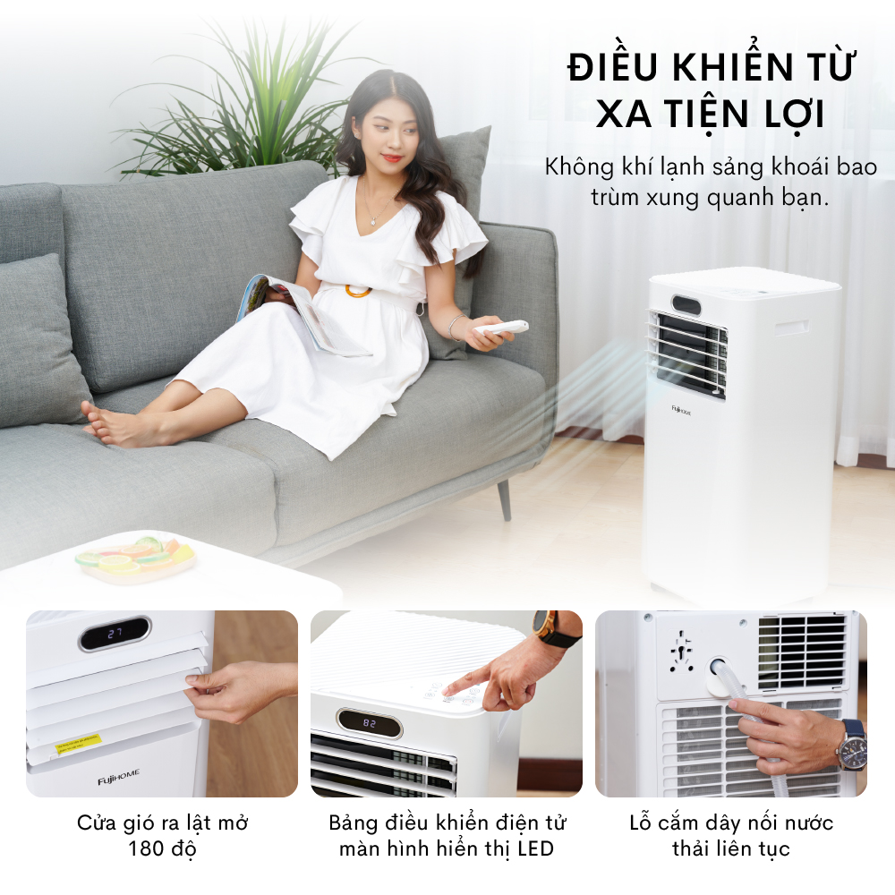 Máy điều hòa di động thông minh FUJIHOME-Công nghệ Nhật Bản >> Máy lạnh di động 4 trong 1: làm lạnh, hút ẩm, quạt, lọc không khí <<<
