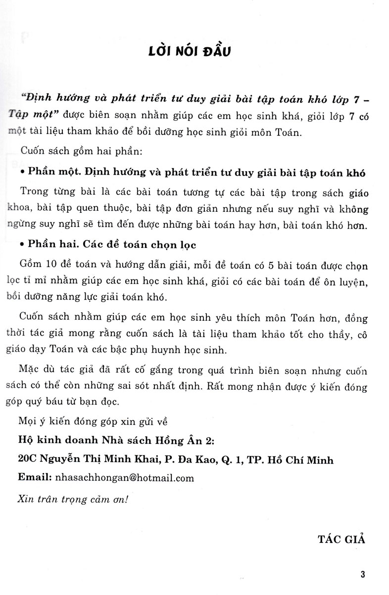 Định Hướng Và Phát Triển Tư Duy Giải Bài Tập Toán Khó 7 - Tập 1 (Dùng Chung Cho Các Bộ SGK Hiện Hành)