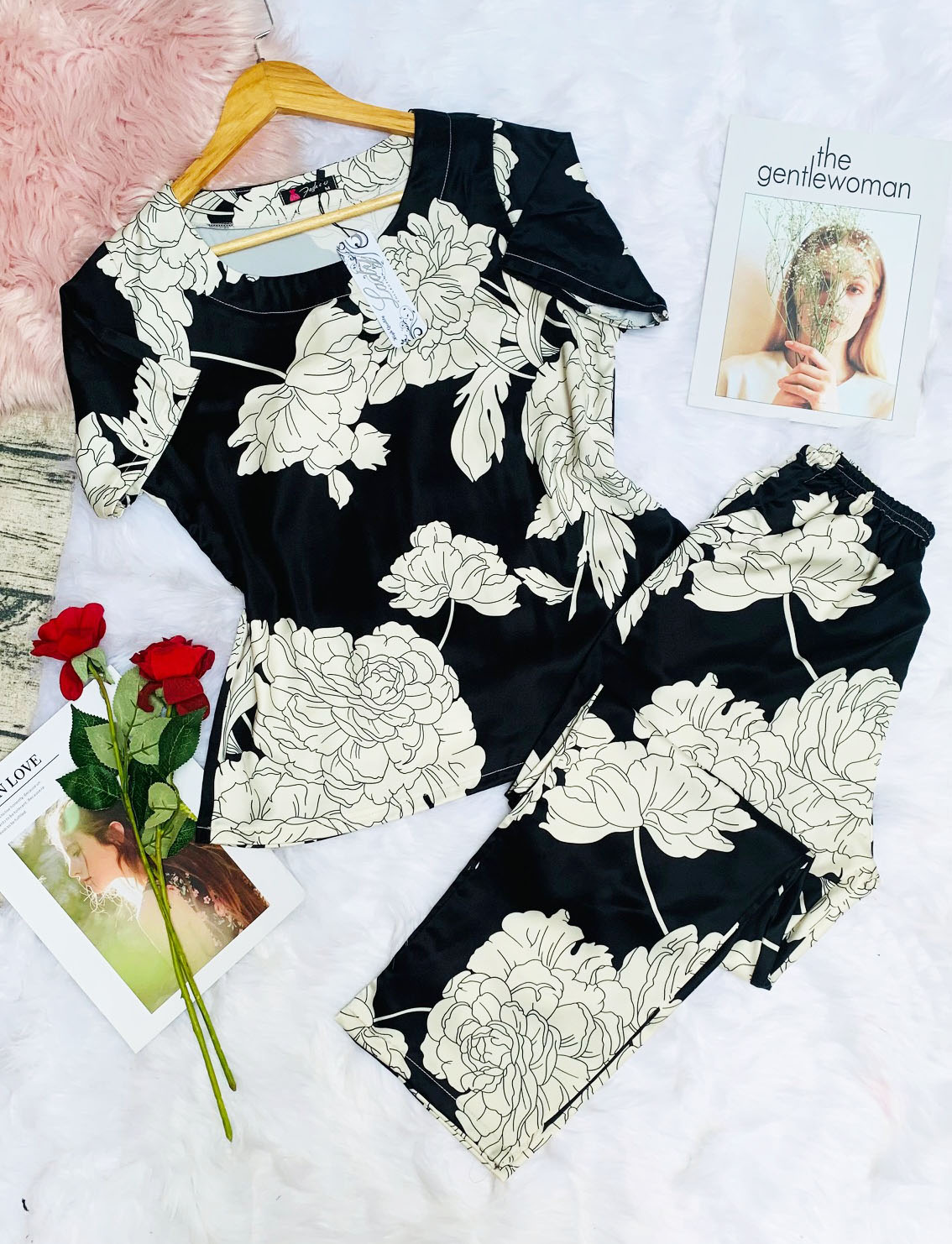 Thương hiệu: Sanny House Tên sản phẩm: Bộ đồ ngủ Chất liệu: lụa cao cấp mềm mịn, co giãn, thấm hút tốt Kiểu dáng: gợi cảm, trẻ trung, hiện đại Màu: đen Size: dưới 56kg