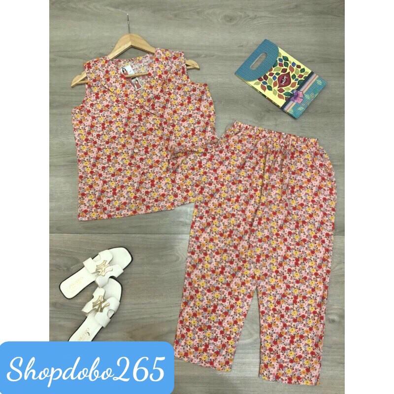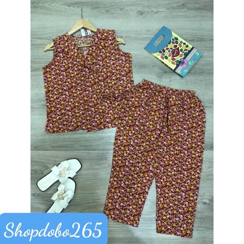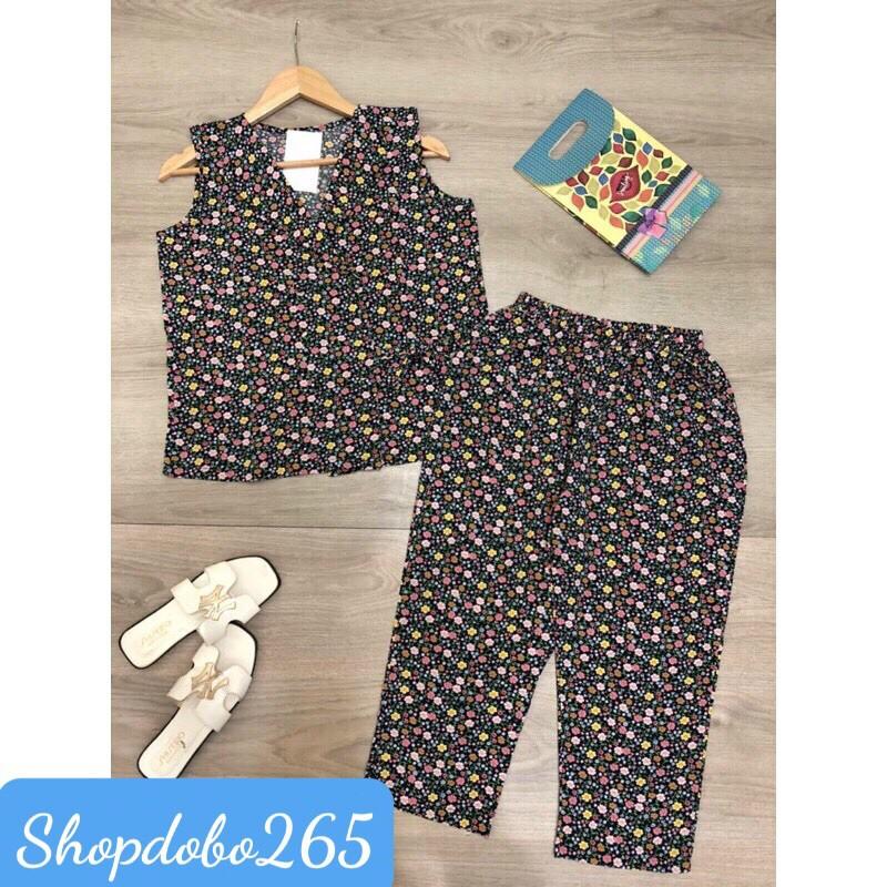 Đồ bộ nữ,đồ ngủ mặc nhà lửng 9 tấc sát nách vải lụa hoa nhí.