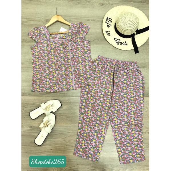 Đồ bộ nữ,đồ ngủ mặc nhà lửng 9 tấc vải lụa họa tiết hoa nhí size 45-57kg.