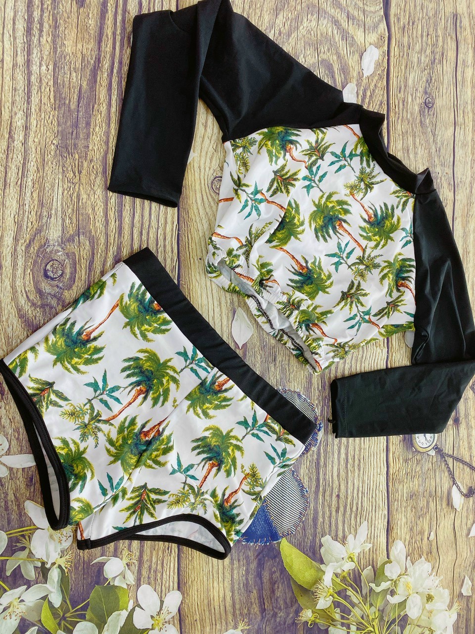 Set Đồ Bơi Nữ Rời Đùi Dài Tay Đi Biển Đi Bơi Chất liệu Polyester 88%, mật độ dệt vừa Áo có sẵn lớp đệm, hông áo có thể rút lên làm croptop cá tính