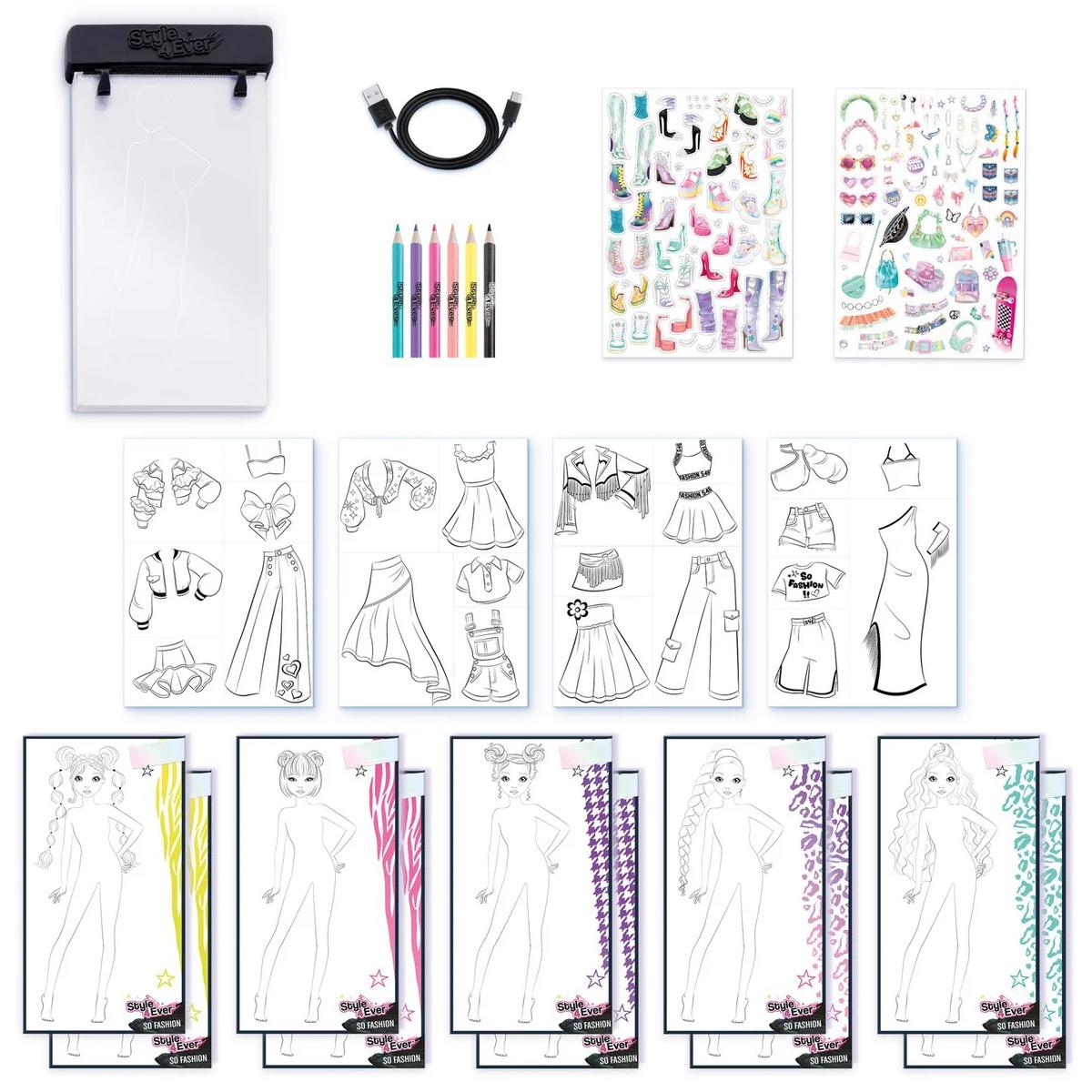 Mua tại TiktokĐồ Chơi Bảng Vẽ Thiết Kế Thời Trang - Style 4 Ever OFG320 Bảng vẽ thiết kế thời trang Stlye4ever với công nghệ mới cho phép phần bảng kê nền phía dưới phát sáng. Sản phẩm bao gồm: