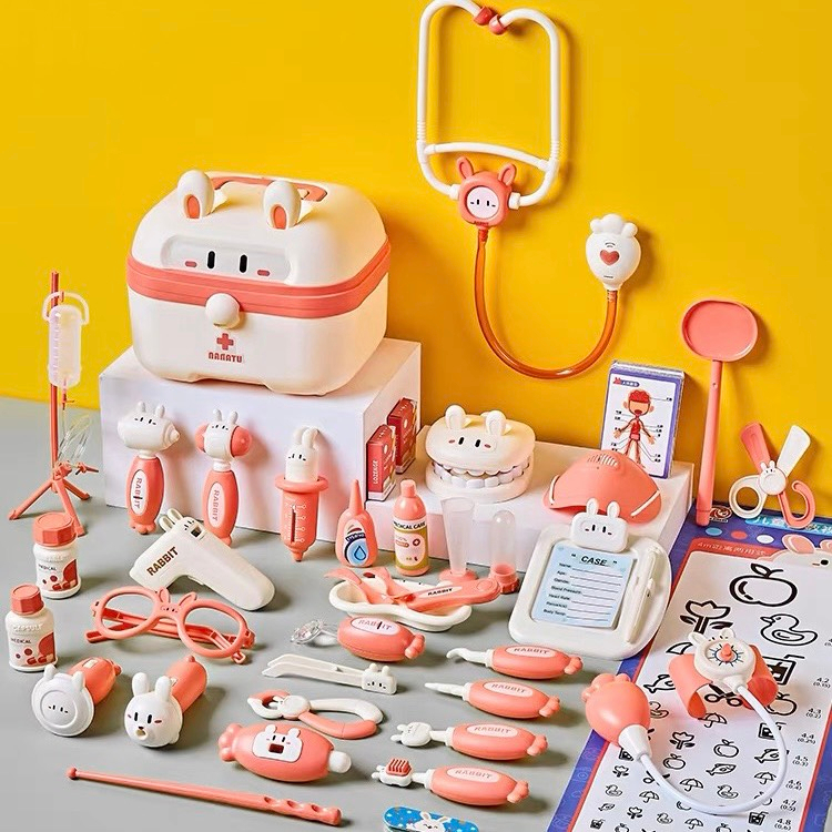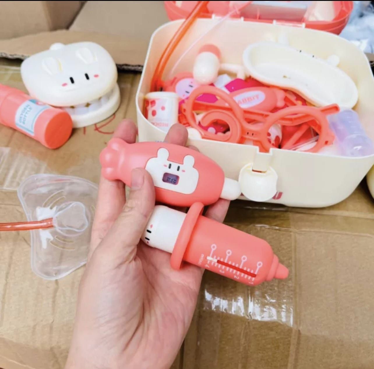 - bộ sản phẩm bao gồm đầy đủ các vật dụng như ảnh chụp thực tế ở trên Nghề Y là 1 nghề cao quý với ý nghĩa nhân văn của nghề này mang lại nên 1 trong những đồ chơi hướng nghiệp, đồ chơi nhập vai mà bố mẹ hay tìm cho con đó là: Đồ chơi bác sĩ cho bé Shop cung cấp cho bố mẹ tham khảo: Bộ đồ chơi bác sĩ cho bé hình thỏ 36 chi tiết - mẫu mới Đồ chơi bác sĩ cho bé gái trai đóng y tá khám bệnh phiên bản nâng cấp có đèn nhạc, quà tặng sinh nhật Bộ đồ chơi bác sĩ cho bé gái trai đóng y tá khám bệnh phiên bản nâng cấp có đèn nhạc, mô hình đồ chơi bác sĩ dụng cụ y tế là đồ chơi rất bổ ích và thú vị cho bé yêu của bạn. Với những đồ chơi trí tuệ mang tính tương tác này, bé sẽ có bước khởi đầu hình thành nhân cách thuận lợi hơn, bé sẽ biết yêu thương, quan tâm và chăm sóc đến ông bà, bố mẹ và những người xung quanh.